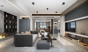 Modern simple style guest meal integrated design, grey wood main theme + open layout, embedded light belt + modular furniture, the space is transparent and practical, comfortable and fashionable home choice.