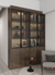 Walnut color retro bookcase, imitation stone backboard engraved with traces of time, classic modeling interpretation of elegant collection art.