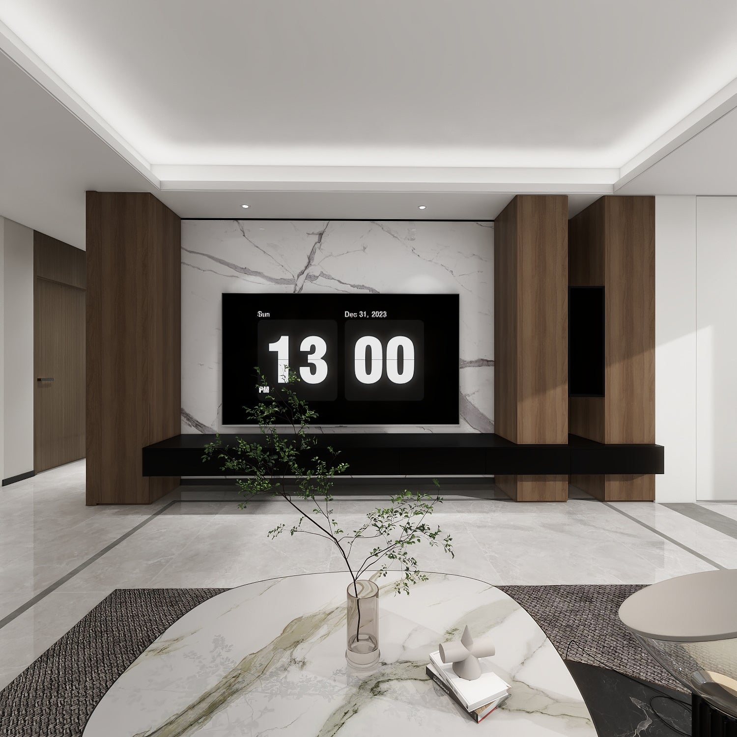 This 280㎡ three bedroom space is dominated by the warm texture of grey coffee oak and the calm atmosphere of cotton velvet grey, creating a high-end and comfortable living atmosphere. Some cabinets are cleverly integrated into glass elements and artistic back design, which not only adds a sense of transparency of the space, but also highlights a unique artistic taste, making the home a perfect display of taste and style.